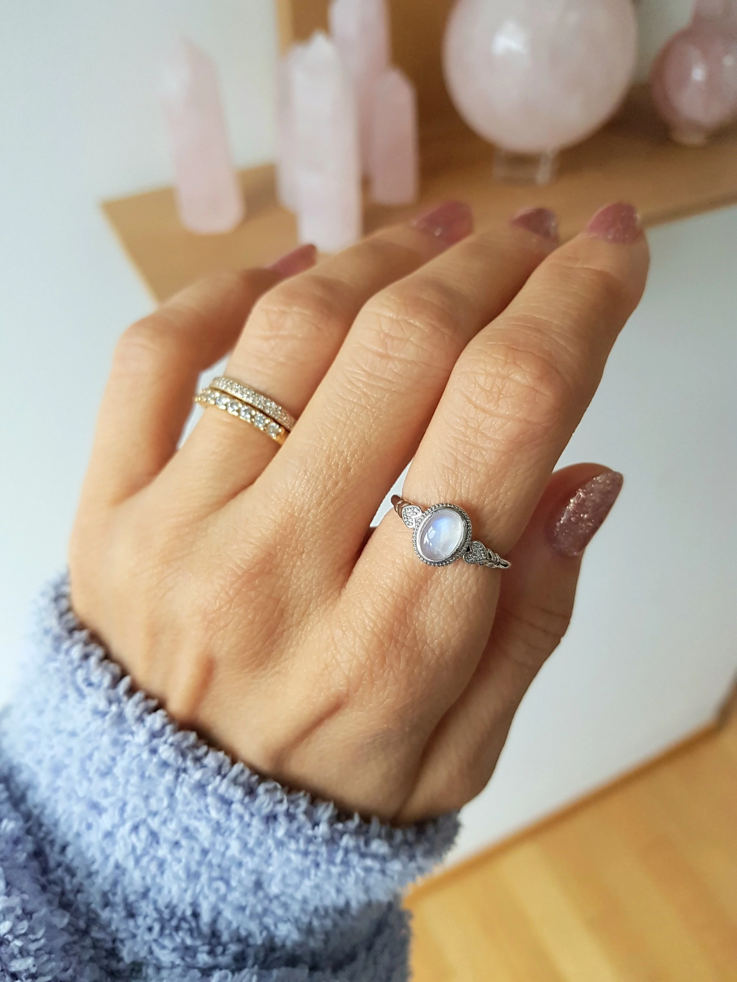 Moonstone je kamen intuicije, ženskosti in čustvene harmonije. Povezan je z energijo Lune, zato nosi simboliko ciklov, novih začetkov ter notranje rasti.